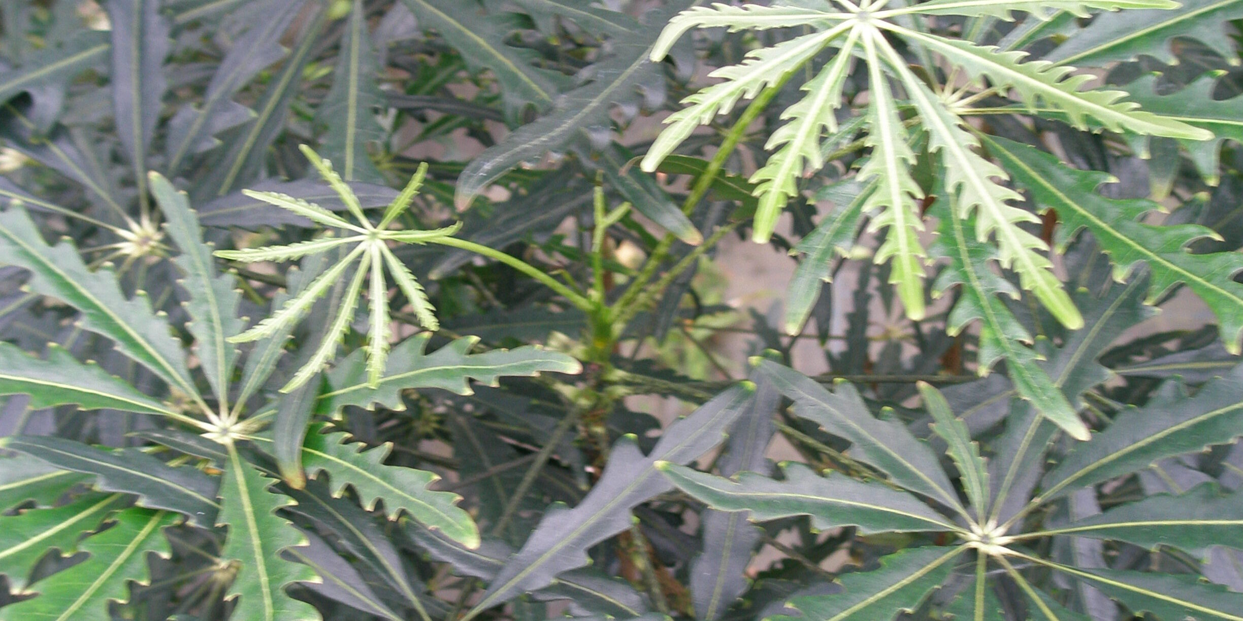 正式名はディジゴセカ。切れ込みのあるノコギリ歯状の葉を持つ。