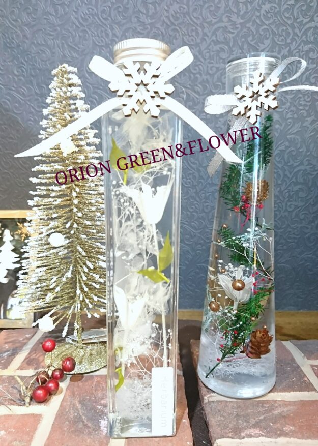 クリスマスをイメージした ハーバリウムレッスン。 ボトルのリボン等を変えて、お正月にも。 そして、その後も飾れるようなデザインもご提案しています。 とても人気の為、お早めのご予約お待ちしております。 普段のデザインも、通…