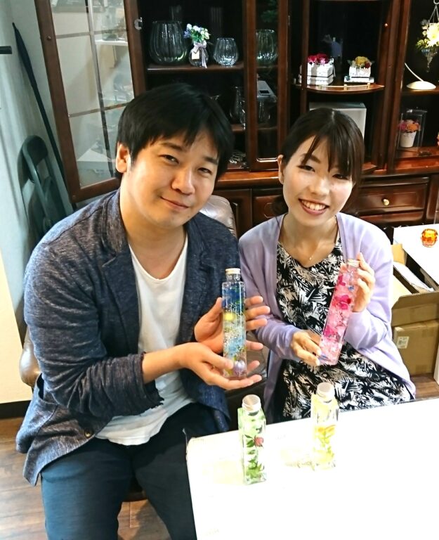 今回ネット検索で、桶川市からいらしていただき、ありがとうございます🎵。お問い合わせ嬉しく、お忙しいお時間の中、沢山作っていかれました。追加ボトルも大きさや何色で作るか、とても悩まれていらっしゃいました。 とても素敵に出来…