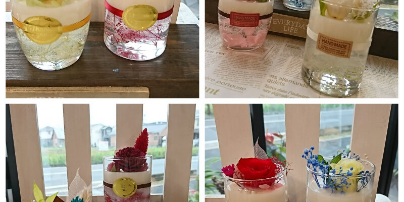 キラキラジュレのようなアロマワックスカップを2個お作り頂くレッスン。