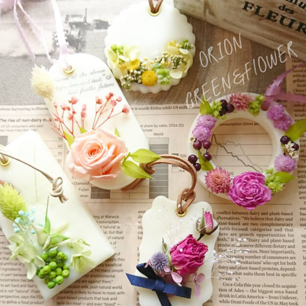 只今人気の アロマワックスサシェ皆様続々レッスン受講下さり、とっても可愛らしく素敵に制作されました❣️ ハーバリウムでもリピーター様、今回もお嬢様と仲良くハーバリウムも追加でお作り頂きました✨ こちらは、アロマワックスに…