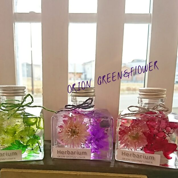 最近本当にハーバリウムの販売やレッスンを色々な所で見かけるようになりました。 カラーやデザイン、価格など様々ですが、ORION GREEN&FLOWERでは、 使用する オイルや花材に、こだわり、ハーバリウムのデ…