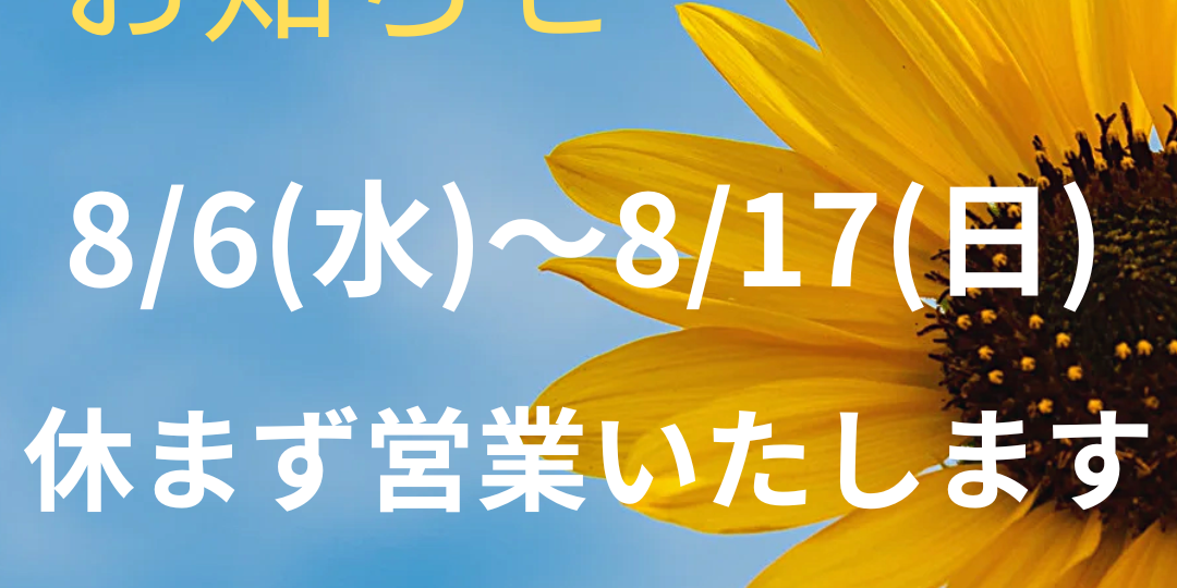 ●8/11(月)、8/12(火)は休まず営業いたします。