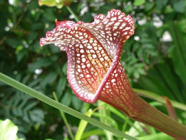 筒状の葉をもつ食虫植物。冬は霜にあたならければ野外でOK。開花は4~5月。